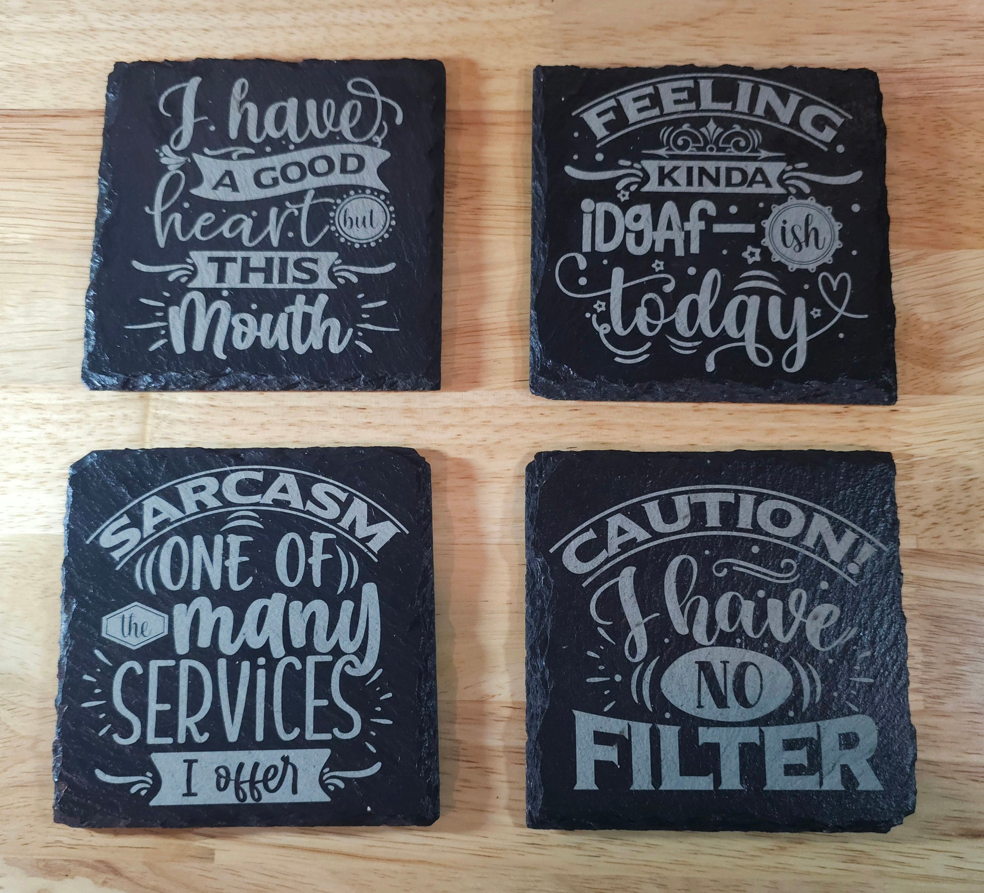 Sarcastic / Funny Sayings Set of 4 - Laser engraved Slate Coasters