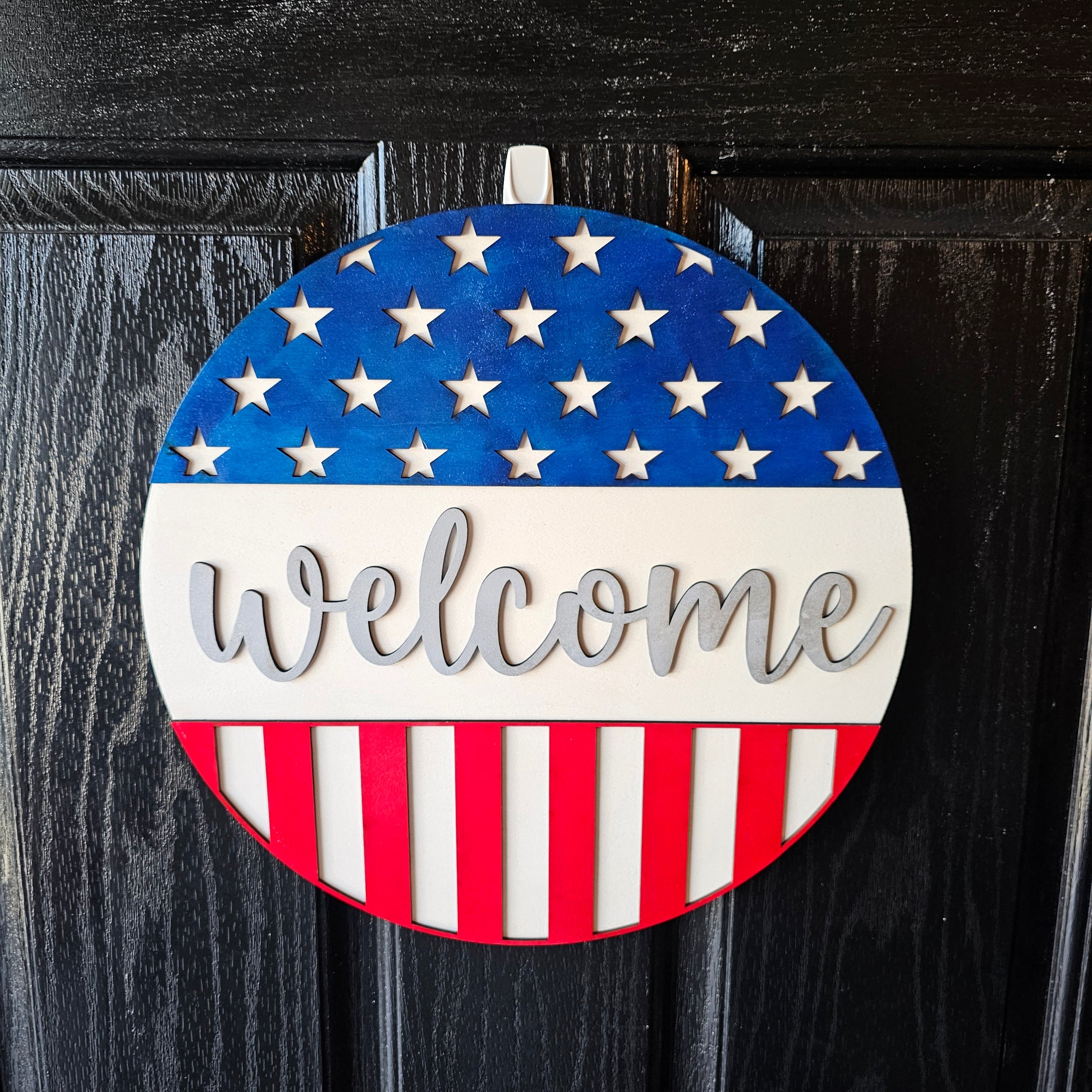 This 14-inch wooden door hanger features a laser-cut and hand-painted design, ideal for enhancing doors, walls, or posts both inside and outside your home.